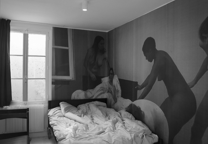 2019, וידיאו פעולה מתועד, הדפס זירוקס, 250×448 ס"מצילום הצבה מתוך הסטודיו של האמנית ב-Cité internationale des arts, פריז