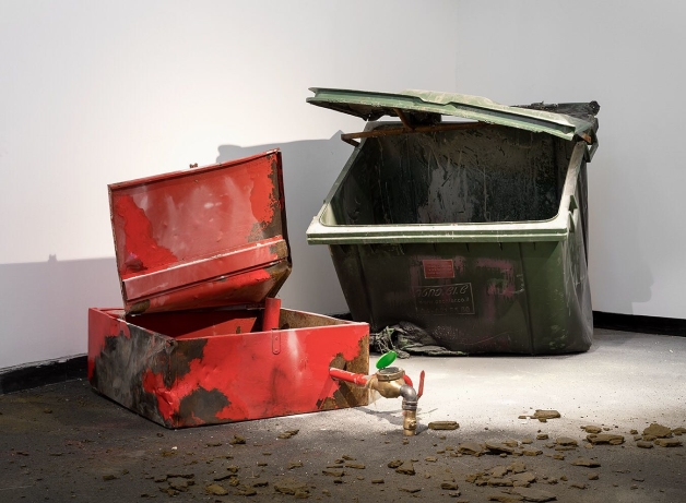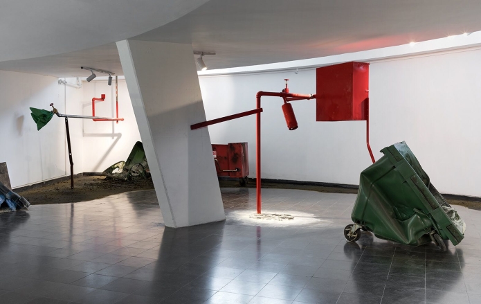 פחי אשפה, מערכת כיבוי אש, מתכת שרופה, 2018כחלק מהתערוכה 'שפע', מוזיאון בת ים