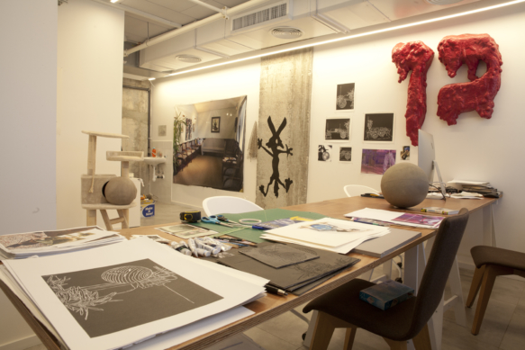 סטודיו פתוח עם אמני תוכנית הרזידנסי – נרדין סרוג’י, להלי פרילינג, אנה ווילד, מעיין אליקים, תומר דקל וקרן גלר.