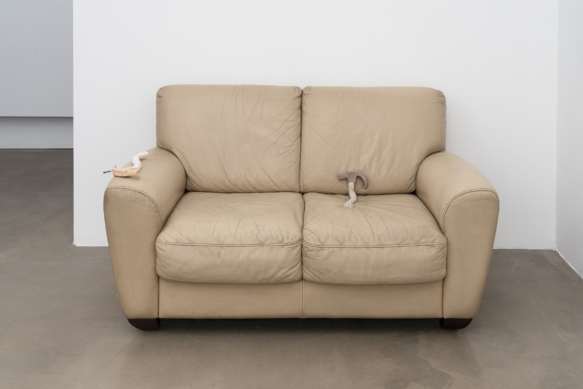 שני פטישים עשויים מחימר שוכבים פרקדן, נחים אחרי דפיקה. בין אצבעותיו של פטיש אחד סיגריה מגולגלת ורגלו של הפטיש השני מושטת ככפה רכה של כלב. שני הפטישים סיימו לבנות את התערוכה וכעת הם מוטלים מותשים על ספסל פשוט המוצב בחלל. דפיקה אחת הומרה בדפיקה אחרת, הליבידו הותמר ליצירה. אי אפשר שלא לזהות את זוג הפטישים – ארוכים, דקים ונשיים כפורטרטים עצמיים של נעמה ערד תכלת ורם, שתי פסלות בעלות פרקטיקה עצמאית שהתכנסו בתערוכה זו לחלל אחד של יצירה משותפת