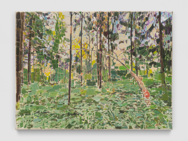 Shanan’s performative acts lay the foundation for her video works and paintings. While the camera captures and defines the entire frame, the hand-held brush deconstructs it into its basic components: small, precise strokes form tiny lines that gradually build the entire painting. While painting, Shanan seeks to uncover the inner essence of things, the place where green splinters into countless shades, where a leaf is composed of capillaries. Painted nature is, in effect, constructed from nature itself—mineral and vegetal pigments applied to a surface of linen fibers. Each painting takes months to complete, built up gradually through pausing and resuming, an accumulation of strokes placed side by side on the canvas, past time alongside present time. The landscape that ultimately takes shape is both familiar and unfamiliar, similar yet diverging from the original. It is a painting that traces reality without masquerading as reality, representing the world as seen through the eyes of one who seeks not merely to observe, but to actively engage with it.