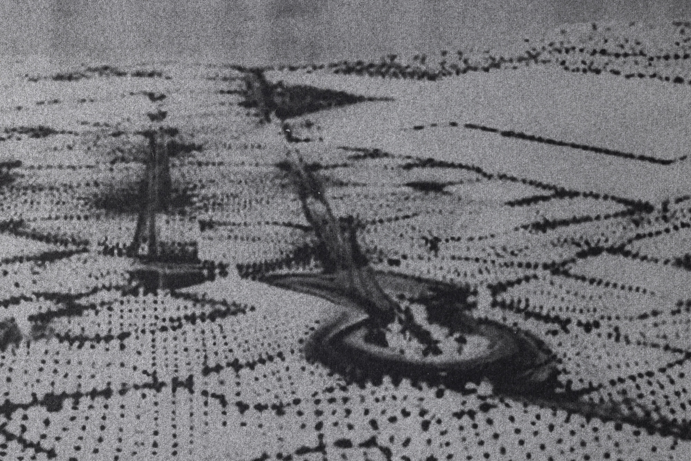 Utopian cities, printed in silver on black paper, are part of a series of images created in an extended dialogue with AI, originally featured as fluorescent projections in complete darkness in this very space about a year ago. Since their debut, both reality and our yearning for utopia have transformed, and the nocturnal, somber cities have been tinged by the human consciousness enveloping them. In a dystopian reality, these cities shimmer in darkness more remotely than ever. Perhaps the amazing grace will descend upon us and guide us there. Perhaps we, too, will learn to release the burden of past choices, and finally find our true way home.